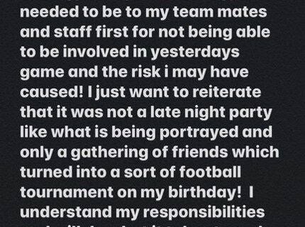 Устроивший вечеринку форвард «Уотфорда» извинился за нарушение условий карантина