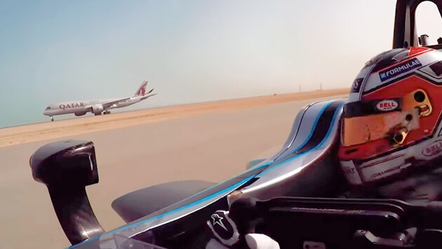 "Формула Е" подписала партнерское соглашение с одной известной авиакомпанией. В честь этого в аэропорту Дохи состоялись соревнования между болидом Spark SRT_01E, за рулем которого сидел гонщик Жером д'Амброзио, и двумя пассажирскими самолетами. В первом заезде д'Амброзио соревновался со взлетающим лайнером, во втором - с заходящим на посадку. Оба раза болид вырывался вперед, но вскоре терял преимущество и проигрывал. Соревнования "Формулы Е" проводятся с 2014 года. В гонках соревнуются только электромобили. 32-летний бельгиец Д'Амброзио - победитель двух этапов "Формулы Е".