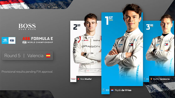 Субботняя гонка Формулы E прошла на мокром асфальте автодрома имени Рикардо Тормо в Валенсии, и стартовала она за автомобилем, точнее, электромобилем безопасности, поскольку у пилотов электрической серии не было опыта пилотирования на этой трассе в таких условиях. Стоит напомнить, что в Формуле E не применяется дождевая резина, в любую погоду гонщики ездят на одних и тех же обычных шинах Michelin, которые можно приобрести в любом магазине. На старте да Кошта сохранил лидерство, но уже на втором круге пришлось нейтрализовать гонку жёлтыми флагами, посколько в борьбе за 5-ю позицию Андре Лоттерер ошибся на торможении и откровенно выбил с трассы Себастьена Буэми. Nissan швейцарца остановился на обочине, и убрать машину удалось не сразу, поэтому на трассу выехал сейфти-кар. При этом Лоттерер смог продолжить движение и в этот период занимал 9-ю позицию, хотя похоже, что его Porsche тоже получила какие-то повреждения. На пятом круге гонка возобновилась, да Кошта удержал лидерство и постарался сразу создать отрыв от преследователей, а позади него шла плотная борьба: Макс Гюнтер ехал вторым, но его атаковали Алекс Линн и Ник де Вриз. На шестом круге де Вриз опередил Линна, однако тот не сдавался, пытался отыграть позицию, но не получилось. Инженер Ника по радио посоветовал ему не беспокоиться об экономии энергии, и тот сразу опередил следующего соперника, Макса Гюнтера. Следом немецкого гонщика BMW обогнал и Линн, выйдя на третью позицию. Тем временем да Кошта уже оторвался от пелотона на 3,5 секунды. Дирекция гонки объявила, что Лоттерер получил штрафной проезд по пит-лейн за столкновение с Буэми. На 11-м круге Гюнтер, ехавший третьим, не смог удержать машину на мокрой трассе, вылетел на обочину и застрял в гравии, уткнувшись передним крылом в барьер из старых шин. Электромобиль безопасности, ярко раскрашенный Mini Pacesetter, выехал в третий раз. Разумеется, преимущество, созданное да Коштой, был утрачено. После рестарта борьба возобновилась, но интересно, что наиболее острую схватку вели напарники по команде Mahindra, два Алекса – Линн и Симс. Линн пока удержал третью позицию, но напарник его весьма активно прессинговал. К 14-му кругу Стоффель Вандорн, стартовавший с последней, 24-й позиции, уже добрался до 12-го места, но в одном из поворотов не смог удержать машину на трассе и вылетел в гравий, и хотя смог вернуться в борьбу, но потерял шесть позиций. На трассу вновь выехал сейфти-кар, на этот раз после вылета Серджио Сетте Камары, бразильского гонщика Penske. Как выяснилось, между ним и пилотом Jaguar Митчем Эвансом произошло столкновение, но новозеландец хотя бы смог доехать до боксов, где его гонка тоже досрочно завершилась. На рестарте Симсу удалось опередить напарника и выйти на третью позицию, после чего он начал преследовать де Вриза. В это время лидер гонки, да Кошта, активировал режим атаки, чтобы гарантировано оторваться от преследовавшего его де Вриза. Следующим гонщиком, вылетевшим с трассы, стал опытнейший Андре Лоттерер, его Porsche остановилась посреди гравийной ловушки после контакта с машиной Эдоардо Мортары, представителя Venturi. Это вызывало заключительное появление электромобиля безопасности, поскольку до финиша оставалось всего два круга. На рестарте Симс пытался атаковать де Вриза, но тот агрессивно защищался, и британец оказался на обочине, но вернулся в 