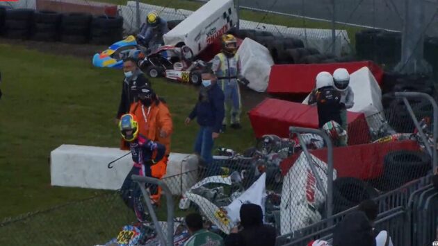 Массовый завал произошёл в одной из квалификационных гонок первого этапа чемпионата мира по картингу FIA, который в эти выходные проходит в бельгийском Генке.