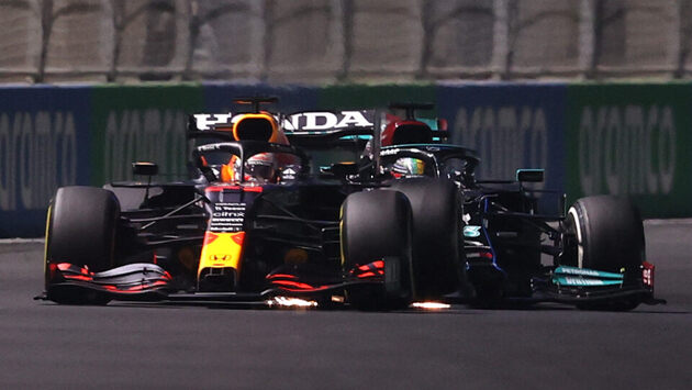 Два штрафа Ферстаппена и третья подряд победа Хэмилтона. Хроника гоночного дня Формулы 1 в Джидде