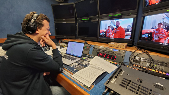 — Если обратил внимание, мы с тобой смотрели гонку всего по одной, общей для всех трансляции. На мониторы можно вывести картинку с нескольких камер, и я пробовал так вести гонку. Но потом от этой практики отказался, так как отвлекаешься и начинаешь комментировать не то, что зритель видит у себя на экране. Но даже в таком случае режиссёр трансляции может подсказать в наушник что-то, что увидел с другой камеры. И я говорю об этом, опережая переключение картинки в трансляции.