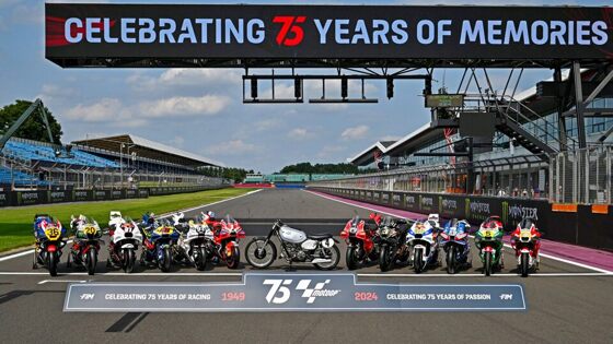 В ближайшие выходные на Гран При Великобритании MotoGP серия отметит 75-ю годовщину существования чемпионата мира. Можно было бы ограничиться официозными заявлениями и торжественными мероприятиями с участием официальных лиц и почётных гостей, но в турнире пошли дальше. В рамках празднования все команды MotoGP обязали провести уик-энд на «Сильверстоуне» в эксклюзивных ливреях.