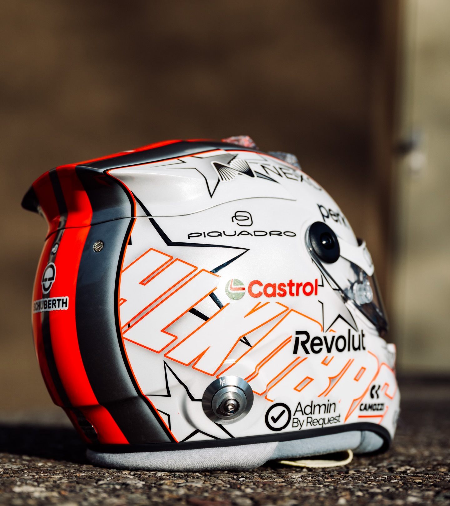 С правой стороны шлема располагается надпись «HLKNBRG», отсылающая к фамилии гонщика, а с левой стороны размещается гоночный номер «27», который также находится на макушке шлема.