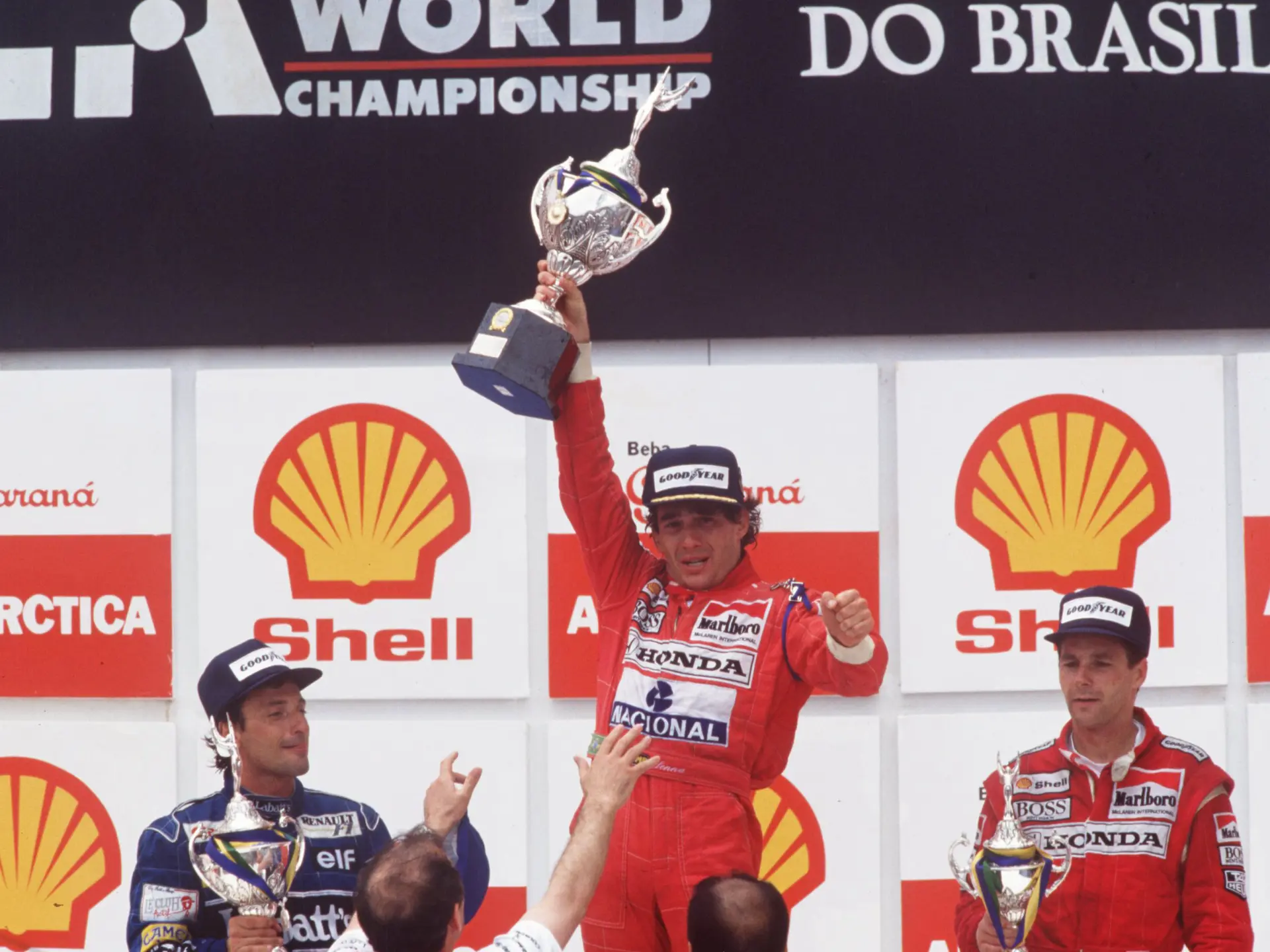 Триумф был и блаженством, и пиком физического истощения. На круге замедления в эфире слышались рыдания Сенны, смешанные со слабыми возгласами радости. В парке замкнутых трасс он был так истощен, что его пришлось вытаскивать из кокпита профессору Сиду Уоткинсу, главе медицинской команды на Гран-при «Формулы-1». Айртон не мог поднять трофей и умолял отца не обнимать его из-за невыносимой боли. «Я вернулся в реальность, только когда увидел клетчатый флаг, — сказал он позже. — Тогда я по-настоящему почувствовал, как хорошо быть живым, быть на Интерлагосе, на своей земле, видеть своих людей такими счастливыми. Это была не величайшая победа в моей жизни, но самая тяжелая».