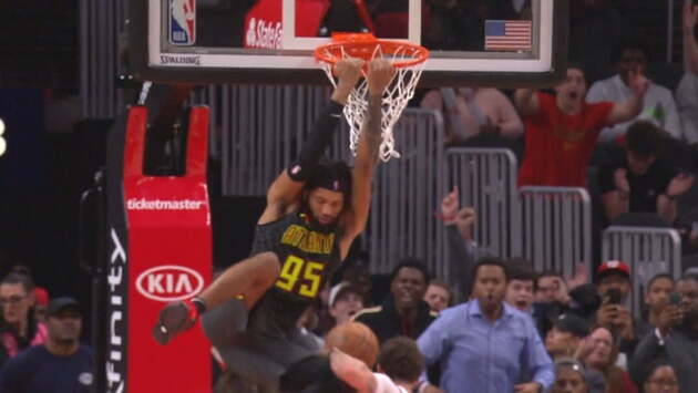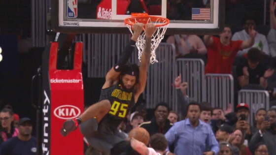Деандре Бембри вколотил сверху спиной к кольцу с навеса Трэя Янга