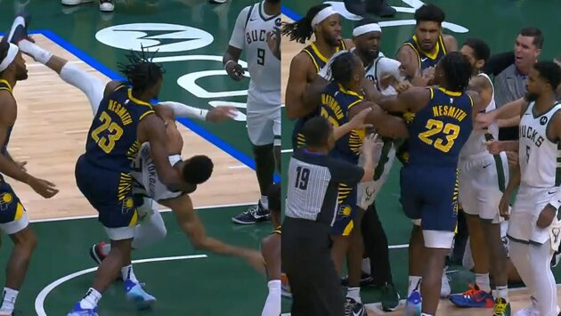 «Бакс» пришлось удерживать Бобби Портиса и Танасиса, готовых драться с Несмитом за фол на Яннисе
