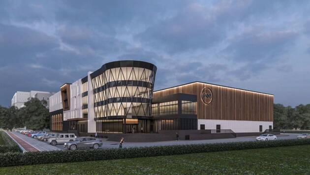 «Баскетбольный комплекс международного уровня для тренировок и соревнований планируется достроить в 2025 году. Основным элементом здания станет центральный фасад главного входа, оформленный в виде расширяющейся кверху полукруглой баскетбольной корзины, панорамное остекление которой благодаря ромбовидным элементам будет символизировать сетку корзины. Общая площадь спортивного объекта составит около 8,8 тысячи кв. метров», — отметил Андрей Бочкарёв.