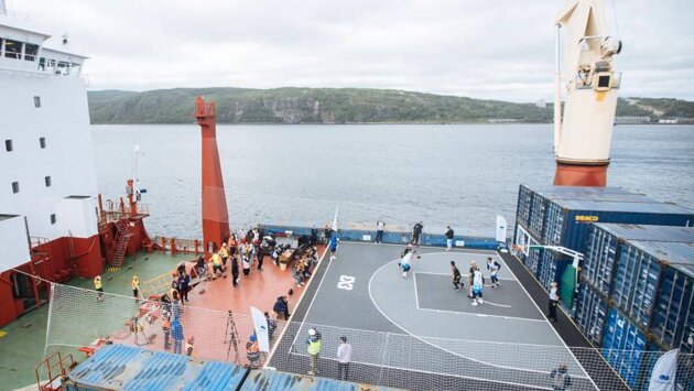 Евгений Воронов, Сергей Карасев и Антон Понкрашов сыграли в баскетбол в Арктике