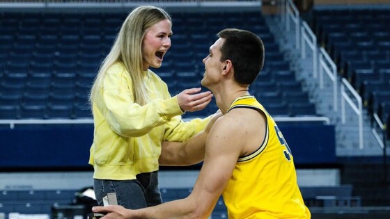 Российский баскетболист Владислав Голдин, выступающий в NCAA за университет Мичигана (Michigan Wolverines), вспомнил, как решился сделать предложение своей подруге Кэмрин Воглер. Это произошло в конце февраля после матча с Мичиганским государственным университетом. Предложение Влад сделал прямо на площадке.