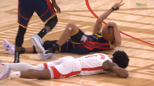 Судьи изучили инцидент и назначили технические фолы Стефену Карри, Диллону Бруксу и Дрэймонду Грину.