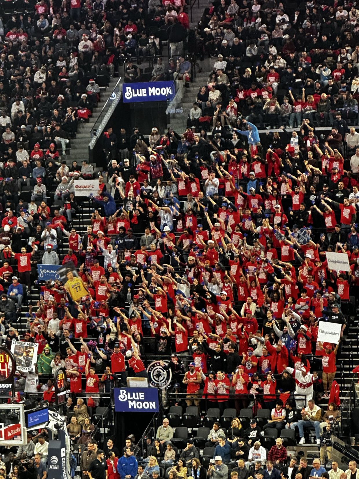 Пока словенский форвард пробивал штрафные броски, болельщики на трибуне The Wall подняли плакаты с названиями программ для похудения: «Оземпик», Weight Watchers и Jenny Craig.