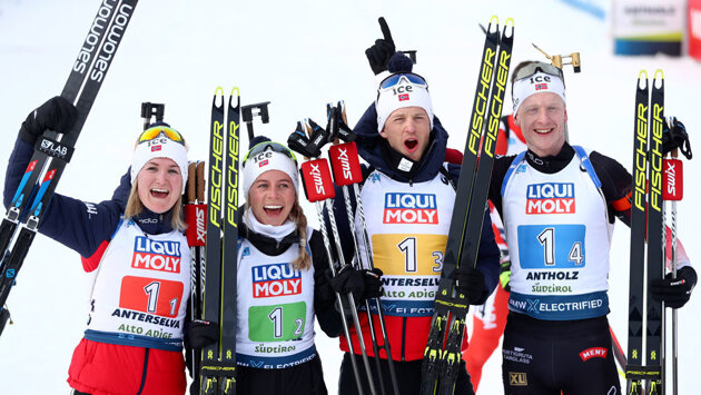 Норвегия со второй попытки выиграла смешанную эстафету в этом сезоне. В Оберхофе скандинавы были третьими, пропустив вперед Россию (Первое место) и Францию (Второе). При этом по ходу гонки в Словении норвежцы были близки к тому, чтобы разгромить преследователей, выиграв минуту и больше, но Марте Рейселанд на последнем огневом рубеже допустила три промаха и едва не ушла на штрафной круг.