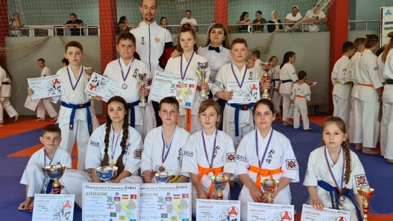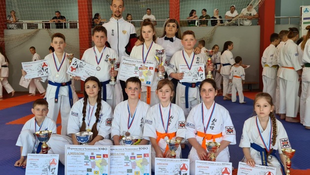 Воспитанники ДЮСШ ст. Выселки в составе сборной Краснодарского края завоевали медали на Первенстве и Чемпионате ЮФО по киокусинкай. Чемпионкой Первенства в своей категории стала Светлана Семенова, серебро у Эллины Лубянко, бронза у Станислава Красилина. На татами наши спортсмены встретились с соперниками из республики Крым, Адыгеи, Астраханской, Ростовской областей и Краснодарского края. Также в рамках этого мероприятия проходили учебно- тренировочные поединки среди детей до 12 лет. Воспитанники спортивной школы показали достойные результаты: 1 место у Максима Тимофеева; 2 место — в своей категории заняли: Максим Холодов, Анжелика Легкая, Валерия Сотникова; 3 места — Адель Артеменко, Герман Герман. Марк Лабужский. По итогам общекомандного зачёта первенства кубанцы заняли первое место. На втором месте — Астраханская область; на 3-ем — Республика Крым. Поздравляем спортсменов и их тренеров — преподавателей: Александра Резникова, Романа Резникова, Карину Киселеву с хорошими результатами. ДЮСШ ст. Выселки выражает благодарность родителям и спонсорам отделения за оказание помощи спортсменам.