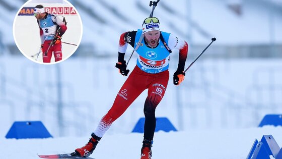 С чистой стрельбой Симон Эдер финишировал 12-м, а если бы не злополучный ремень, мог и в десятку забежать.