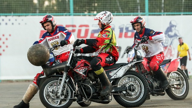 Мотобол — это игра в футбол на специально оборудованных мотоциклах. В каждой команде должно быть по пять человек.