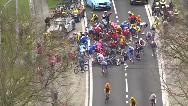 Около 40 человек пострадало в результате массового завала на «Туре Фландрии» из-за маневра поляка Мацеюка