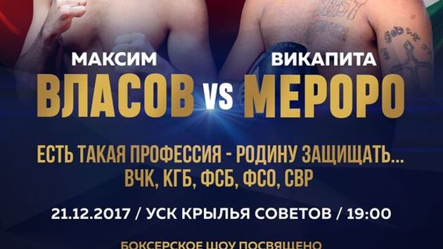 Мероприятие проводится промоутерской компанией "Патриот" при поддержке Федерации бокса России. В главном бою вечера российский боксер первого тяжелого веса Максим Власов встретится с представителем Намибии Викапитой Мероро. В послужном списке 31-летнего Власова 40 побед, 23 из которых нокаутом, а также два поражения. В своем последнем поединке, который прошел в сентябре, он нанес поражение техническим нокаутом канадцу Дентону Дейли. 32-летний Мероро одержал 28 побед, половину из которых - досрочно, шесть раз он проигрывал. В последний раз он выходил на ринг в феврале этого года. Также в рамках этого вечера на ринг выйдут Магомед Мадиев, Умар Саламов, Сергей Калчугин и другие.