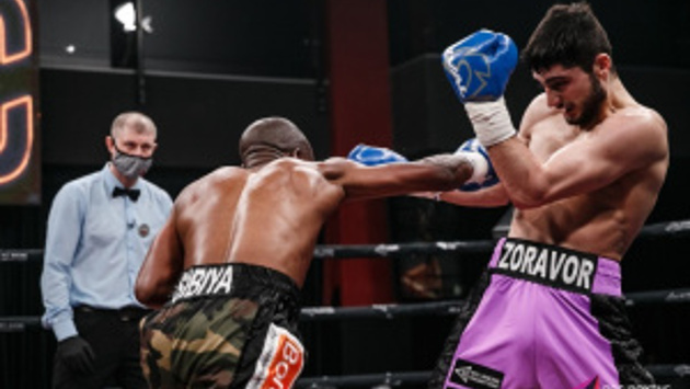 В лимите лёгкого веса (до 61,2 кг) украинский проспект Зоравор Петросян (11-0, 4 КО) перебоксировал возрастного африканца Кооса Сибийю (23-15-5, 3 КО).