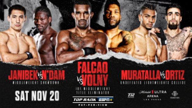 - в лимите среднего веса (до 72,6 кг) топ-проспект из Казахстана Жанибек Алимханулы (10-0, 6 КО) встретится с представляющим Францию экс-чемпионом мира ветераном Хассаном Энжикамом (38-5, 21 КО); - также в этом весе состоится элиминатор по версии IBF: соперника чемпиону Геннадию Головкину (41-1-1, 36 КО) определят Эскива Фалькао (28-0, 20 КО) из Бразилии и Патрис Вольни (16-0, 10 КО) из Канады; - откроет платную трансляцию бой яркого американского проспекта лёгкого веса (до 61,2 кг) Рэймонда Муратайи (12-0, 10 КО) — сразится с поздней заменой в лице аргентинского гейткипера Элиаса Дамиана Араухо (21-3, 8 КО).