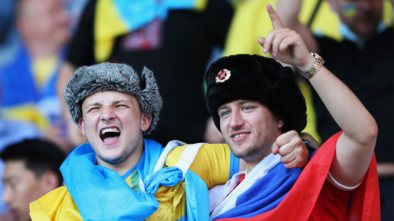 На матче 1/8 финала Евро-2020 на трибуне украинских фанатов появился болельщик с российским флагом. В начале встречи появилась фотография, на которой россиянин, обнявшись с украинцем, смотрит футбол.