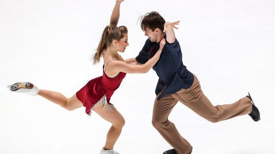 Василиса Кагановская и Максим Некрасов занимают первое место после ритм-танца на заключительном этапе серии Гран-при России по фигурному катанию. Турнир проходит в Санкт-Петербурге.