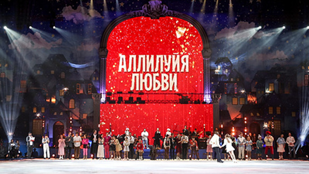МОСКВА, 28 декабря. /ТАСС/. Премьера новогоднего ледового шоу "Аллилуйя любви" состоялась воскресным вечером во Дворце художественной гимнастики Ирины Винер. Представление было построено по принципу легендарного "Голубого огонька" - телевизионного музыкально-развлекательного шоу, которое около 20 лет выходило в Новый год на центральном телевидении. Передача, появившаяся в начале 1960-х, стала настоящим прорывом на советском телевидении: в телекафе собирались самые известные люди эпохи - артисты, ученые, спортсмены, а также передовики производства и Герои Соцтруда.