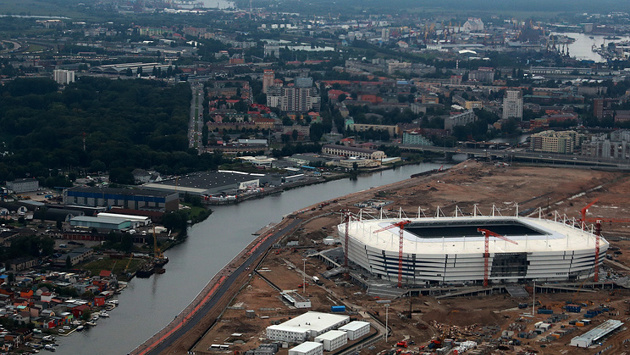 Стадион "Калининград" строится на Октябрьском острове в центре города. Его вместимость составит 35 тыс. мест, срок окончания работ - декабрь 2017 года.