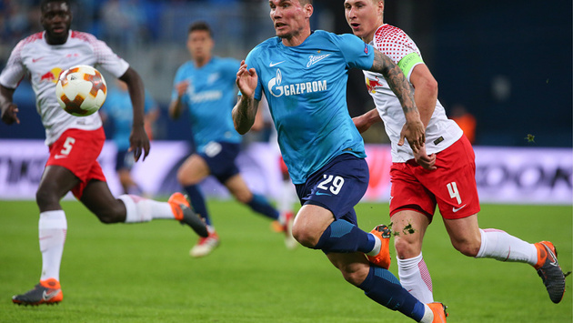 Петербургский "Зенит" сыграл вничью с немецким "Лейпцигом" в ответном матче 1/8 финала футбольной Лиги Европы и выбыл из розыгрыша турнира. Встреча, прошедшая в Санкт-Петербурге, завершилась со счетом 1:1.