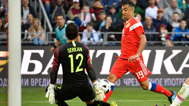 В результате сборная России мгновенно распрямилась контратакой: Смолов сделал скидку на Дзагоева, а тот в свою очередь выполнил отличный разрезающий пас на ход тому же Самедову. Александр бил, казалось, с довольно острого угла, но сумел перебросить голкипера.