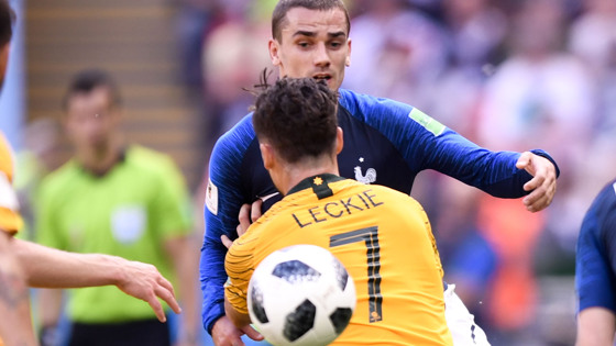 Нападающий сборной Франции Антуан Гризманн забил мяч в ворота команды Австралии в матче первого круга группового этапа чемпионата мира-2018.