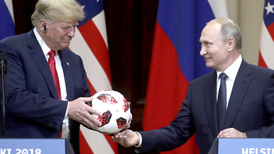Президент России Владимир Путин в ходе пресс-конференции по итогам саммита в Хельсинки 16 июля подарил своему коллеге Дональду Трампу официальный мяч чемпионата мира по футболу 2018 года. Подарок Путина вызвал волну критики со стороны политиков в США. Так, сенатор Линдси Грэм (республиканец от штата Южная Каролина) рекомендовал президенту США проверить мяч на наличие в нем прослушивающих устройств.