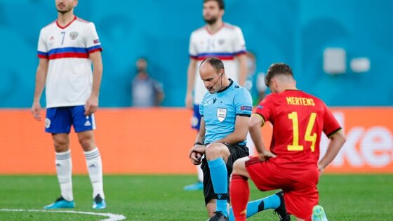 Перед матчем первого тура группового этапа чемпионата Европы-2020 с национальной командой Бельгии игроки сборной России не стали преклонять колено в знак поддержки движения Black Lives Matter, а болельщики освистали бельгийских футболистов и судей, сделавших это.