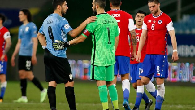 Луис Суарес странно тянул время в матче Кубка Америки с Чили и мешал выбить мяч
