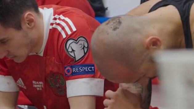 В твиттере сборной России по футболу появилось видео из раздевалки, снятое после финального свистка в матче с Хорватией.