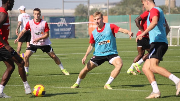 Тренировку «Спартака» в понедельник посетили журналисты и Валерий Карпин. Стрелковый клуб дубайского гостиничного комплекса Jebel Ali Resort включает не только открытое стрельбище и кондиционированный тир, но и футбольные поля. На одном из них работает московский «Спартак», на другом же в понедельник параллельно поводил занятия ФК «Рига». Тренировке красно-белых предшествовало краткое выступление Паоло Ваноли, которое футболисты встретили аплодисментами. Подумалось, что кого-то поздравляют с днем рождения. Выяснилось, однако, что так игроки восприняли сообщение о приезде главного тренера национальной команды. Делиться впечатлениями Карпин склонен не был. «О чем надо, о том и поговорили», - бросил он на ходу группе журналистов. Игроки, между тем, первым делом приступили к занятиям на тренажерах, установленных под шатром в небольшой зоне возле футбольного поля. Работали парами, переходя с одного снаряда на другой. Пока одни волокли на себе утяжеления, другие перешагивали через барьеры, третьи же цепляли к ноге резинку, прикрепленную к снаряду, который напоминал гимнастическую перекладину, и имитировали удары по мячу – таким образом отрабатывается сила удара. «Как Джеки Чан», - прокомментировал это упражнение Николай Рассказов. За всеми внимательно наблюдал, давая попутно указания, тренер по физподготовке Джампьеро Ашенци. «Браво!» - воскликнул он, в частности, увидев, как растягивают эспандер с резким поворотом тела Роман Зобнин и Илья Кутепов. А вот Шамар Николсон и Квинси Промес, делавшие упражнение неправильно, заслужили от итальянца замечания. Все это действо происходило под заводные мелодии типа сальсы. «Копакабана…», - изрек новоиспеченный тренер «Спартака» Андрей Ещенко. На поле, куда затем перебрались игроки, их подстегивала уже не музыка, а громкие крики Ваноли: «Move, move, move» («двигаться»). Они сопровождали упражнение на владение мячом, эдакую разновидность «квадрата». Игроки разбились на две группы (второй руководил Марко Донадель). Внутри каждой были сформированы три четверки. Одна отбирала мяч, а две другие, располагавшиеся по периметру и в центре, не позволяли ей это делать. При этом тренеры требовали максимальной интенсивности, так что футболисты, с одной стороны, быстро перемещались сами, а с другой, не совершали больше одного касания. Тренирующийся по индивидуальному плану Эсекьеле Понсе сначала делал упражнения с тяжелоатлетическими дисками, а потом накручивал круги вокруг поля в компании тренера по физподготовке Ольги Смирновой. Павел Маслов появился позже: пока аргентинец бегал, он работал на велотренажере. Наконец, Максимилиано Кофрие и Александр Максименко, которых, как рассказал глава пресс-службы Дмитрий Зеленов, беспокоят микроповреждения, на тренировке замечены не были. Впрочем, журналисты видели ее не целиком. Фото автора.