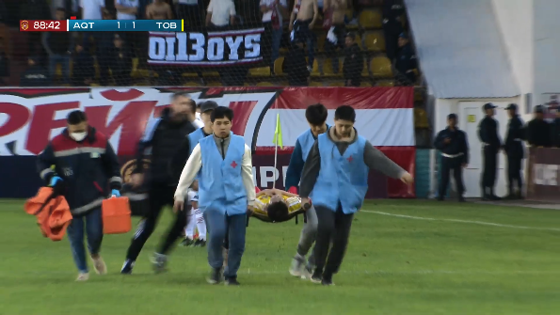 Капитан «Тобола» и игрок сборной Казахстана по футболу Тагыберген покинул поле на носилках и рискует пропустить матчи Лиги наций