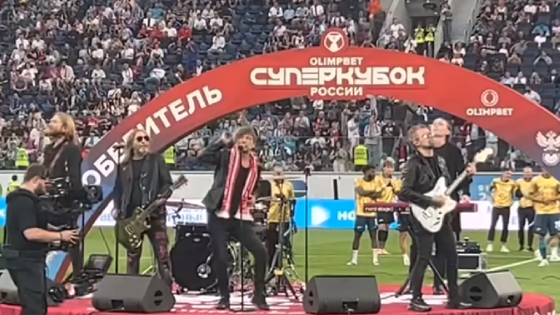 Группа «Би-2» со скандалом выступила на Суперкубке России по футболу, выйдя на поле в шарфах «Спартака»