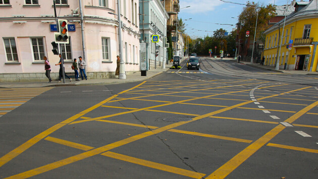 Более 30 перекрестков с «вафельной» разметкой обустроят в Москве в 2024 году. Штраф за выезд на нее – 1000 рублей.