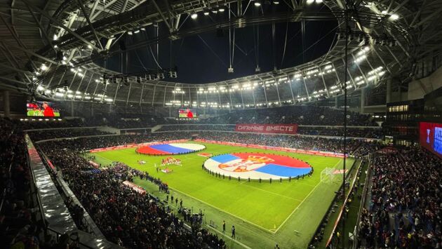 Вообще, этот матч стоило провести хотя бы ради популярной фанатской переклички «Косово – Сербия». Ещё никогда она не была настолько уместна. А ещё забавно совпали скандирования против Fan ID и забег одного из болельщиков по полю. Фанаты за воротами были самой громкой категорией зрителей, но в целом публика была весьма разнообразной. Хватало приятных девушек, которые позировали спиной к полю во время игры.