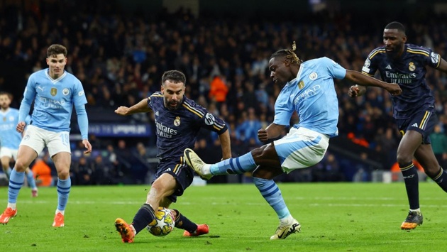 После этого мадридцы откровенно играли вторым номером, а "Манчестер Сити" намного больше владел мячом и создал несколько опасных атак. Однако в завершающей стадии хозяевам не везло - или не хватало точности или надежно действовал голкипер Андрей Лунин, которому помогали защитники. В одном из эпизодов на выручку пришла перекладина.