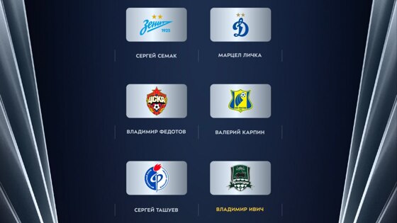 Пресс-служба Мир Российской Премьер-лиги представила список претендентов в номинации «Лучший тренер» премии Winline Герои РПЛ. "Из этого списка журналисты и блогеры выберут пять лучших кандидатов, в число которых уже вошёл Владимир Ивич — он получил бонус за две награды Winline тренеру месяца. На втором этапе именно вы определите список финалистов — со 2 мая стартует открытое голосование болельщиков", - говорится в сообщении. В число претендентов вошли: Михаил Галактионов ("Локомотив"), Рашид Рахимов ("Рубин"), Сергей Семак ("Зенит"), Марцел Личка ("Динамо"), Владимир Федотов (ЦСКА), Валерий Карпин ("Ростов"), Сергей Ташуев ("Факел"), Владимир Ивич ("Краснодар"), Сергей Юран ("Пари НН"), Игорь Осинькин ("Крылья Советов"). Напомним, Владимир Ивич покинул "Краснодар" в марте 2024 года.