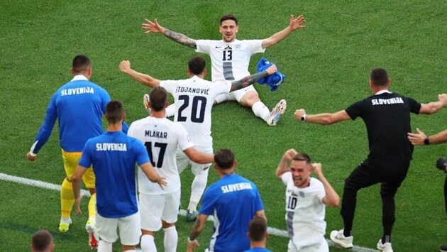 Счет был открыт на 17-й минуте – хавбек датчан Кристиан Эриксен отправил мяч в сетку после паса пяткой от форварда Йонаса Винда. На 77-й отличился словенский защитник Эрик Янжа.