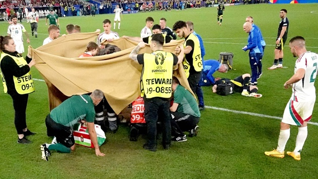 Варга покинул поле на 68-й минуте вчерашней встречи после столкновения с голкипером "тартановой армии" Ангусом Ганном. После контакта с Ганном венгр остался лежать на газоне, совершая конвульсивные движения. Партнеры Барнабаша сигнализировали, что пострадавшему нужна срочная помощь, и растянули вокруг игрока полотно, скрывая его от посторонних глаз. В итоге Варгу увезли в подтрибунное помещение на специальной каталке.