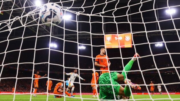 Ощущение, что Германия не ожидала такой прыти от Нидерландов. И первые минут 20 немцы выглядели как сборная из другого дивизиона. Нидерланды же играли свободно, ярко, постоянно искали моменты в атаке. Отличные шансы упустили Хави Симонс и Дензел Думфрис: первому забить помешал Джамал Мусиала, а после удара головой второго мяч пролетел рядом со штангой.
