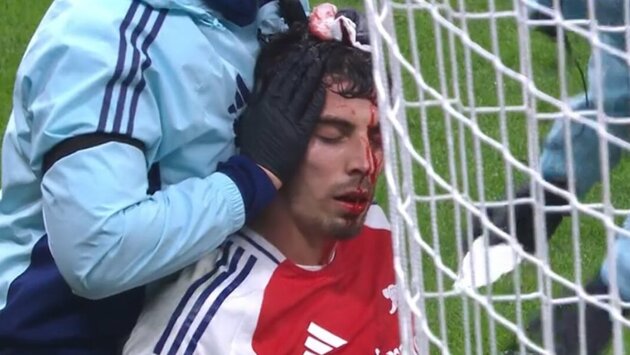 От удара на голове Хавертца образовалась рана, кровь залила лицо Кая. Игрок не смог вернуться на поле, вместо него вышел Мартин Эдегор.