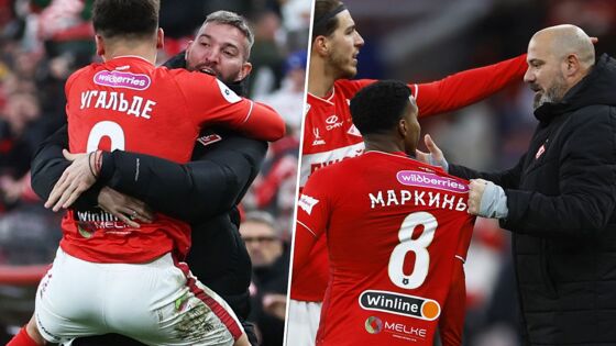 Угальде запрыгнул на Довбню, Станкович тянул Маркиньос за футболку. Фото победы «Спартака»