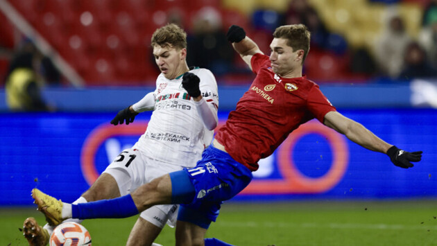 Московский ЦСКА на своем поле сыграл вничью с казанским «Рубином» в матче 17‑го тура МИР Российской премьер‑лиги (РПЛ). Встреча завершилась со счетом 2:2. В составе гостей отличились Мирлинд Даку и Егор Тесленко. У «красно‑синих» дубль оформил Матвей Лукин, который свой второй гол забил в компенсированное ко второму тайму время. На 65‑й минуте защитник казанцев Дмитрий Кабутов получил вторую желтую карточку и был удален с поля. ЦСКА набрал 28 очков и остается на шестом месте в турнирной таблице РПЛ, «Рубин» (23 очка) идет седьмым. В следующем туре ЦСКА 8 декабря сыграет на выезде с воронежским «Факелом», а «Рубин» днем ранее встретится в гостях с махачкалинским «Динамо». Прямые трансляции матчей МИР РПЛ смотрите на телеканалах «Матч ТВ» и МАТЧ ПРЕМЬЕР, а также сайтах matchtv.ru и sportbox.ru. МИР РПЛ. 17-й тур ЦСКА (Москва) — «Рубин» (Казань) — 2:2 (0:1) Голы: Лукин, 63 (ВИДЕО), 90 (ВИДЕО). — Даку, 43 (ВИДЕО). Тесленко, 52 (ВИДЕО). Удаление: Кабутов, 65.