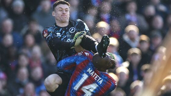 Матч 1/8 финала Кубка Англии между «Кристал Пэлас» и «Миллуоллом», проходящий в эти минуты в Лондоне, был остановлен на семь минут после того, как 30-летний голкипер гостей Лиам Робертс в одном из эпизодов в начале встречи нанёс мощнейший удар ногой в голову в прыжке французскому нападающему хозяев Жан-Филиппу Матета.