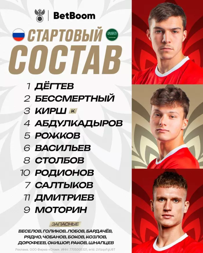 Объявлен состав молодёжной сборной России на матч с Саудовской Аравией.